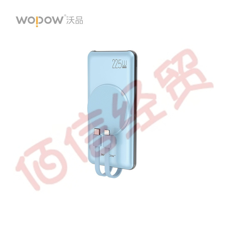 沃品(WOPOW)SQ16磁吸充電寶自帶線22.5w快充移動(dòng)電源帶雙線便攜式 淺藍(lán)色 10000mAh 自營