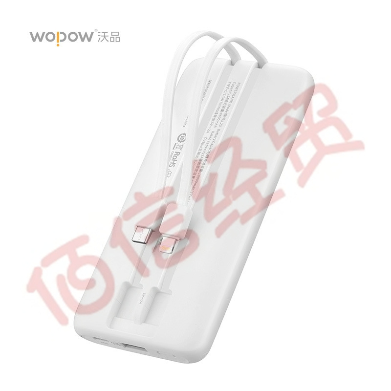 沃品(WOPOW)L23移動(dòng)電源10000毫安時(shí) 數(shù)顯共享充電寶自帶線多口輸出 可定制 白色 10000mAh 自營(yíng)