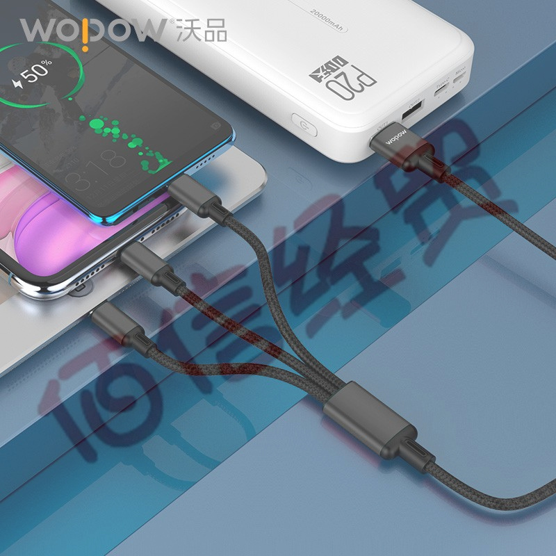 沃品(WOPOW) 沃品LC927快充線一拖三適用于蘋果Type-c安卓手機充電線USB-C充電線 紅色、黑 色 自營