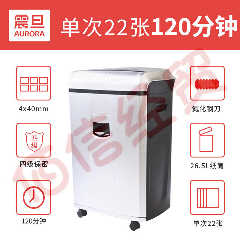 震旦AURORA 4級保密辦公商用碎紙機(單次22張 持續(xù)120分鐘 26.5L 可碎卡、光盤) AS2260CD 自營