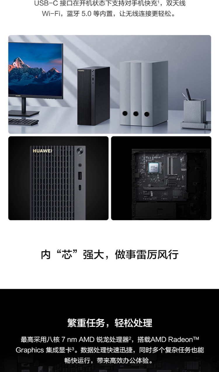 華為HUAWEI_ MateStation_B515_PUL-WDH9A商用臺式電腦_(R5-4600G_8G_1TB_集顯)+AD80HW顯示器 自營