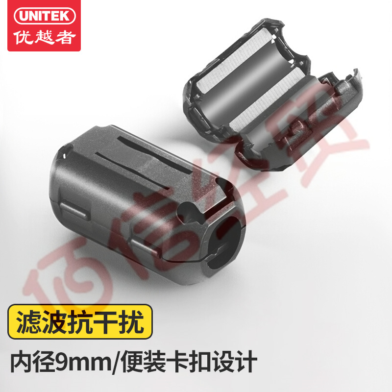 優(yōu)越者(UNITEK)卡扣式抗干擾磁環(huán)內(nèi)徑9mm 可拆卸USB線HDMI線屏蔽濾波磁環(huán) Y-OT13BK 自營