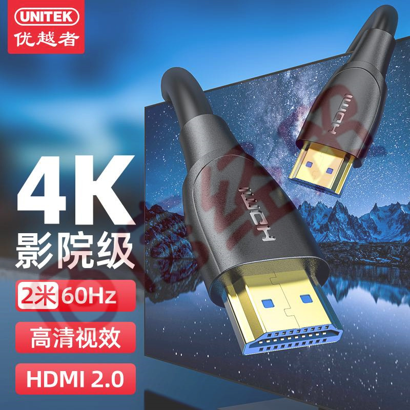 優(yōu)越者 (UNITEK)HDMI線2.0版 電視盒子機頂盒顯示器視頻線 4K/3D數(shù)字電腦連接線 2米 C1039BK 自營