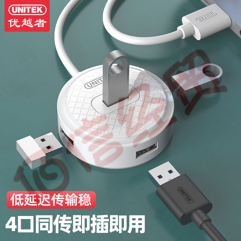 優(yōu)越者(UNITEK)usb分線器2.0 HUB集線器 多接口擴(kuò)展塢 筆記本電腦usb轉(zhuǎn)換器帶電源口 白2米 H200CWH 自營