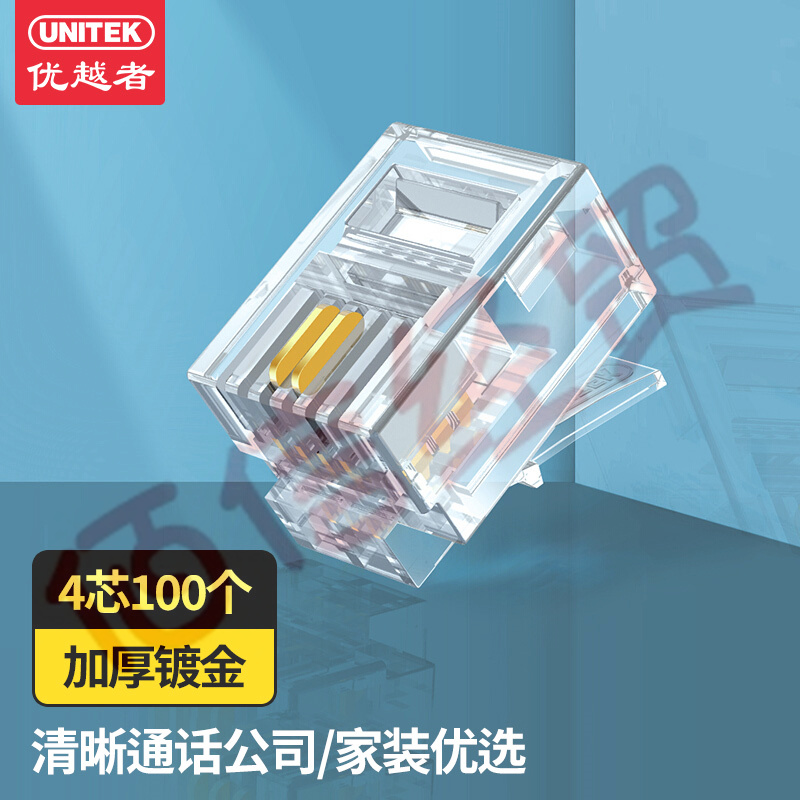 優(yōu)越者(UNITEK)電話水晶頭 高品質(zhì)RJ11語(yǔ)音電話線接頭 6P4C電話語(yǔ)音水晶頭100個(gè)/盒OT26TP 自營(yíng)