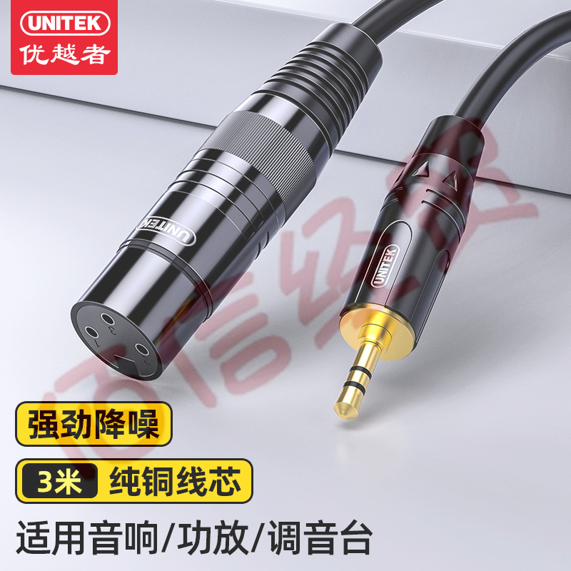 優(yōu)越者3.5轉(zhuǎn)卡儂母音頻線 手機(jī)電腦音響接聲卡麥克風(fēng)話筒調(diào)音臺(tái)連接線 3.5mm公轉(zhuǎn)卡農(nóng)線母頭3米 C9045BK 自營