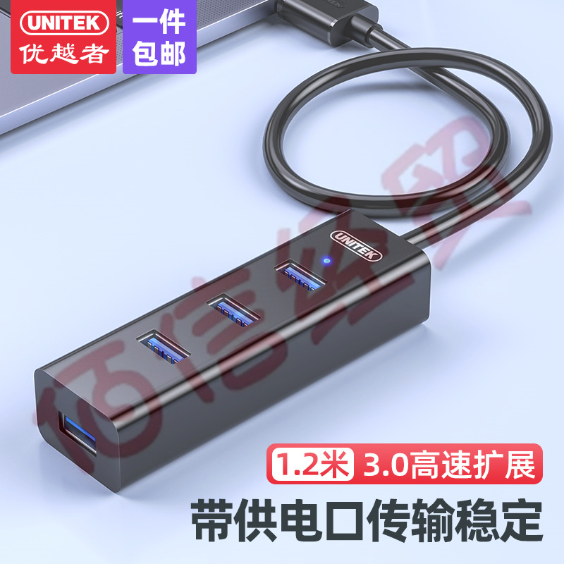 優(yōu)越者 usb3.0分線器 高速4口拓展器 筆記本電腦一拖四轉(zhuǎn)換器多接口延長線帶電源口 黑色 1.2米 Y-3089ABK 自營