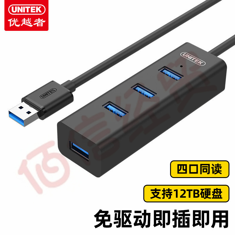 優(yōu)越者 usb3.0分線器 高速4口拓展器 筆記本電腦一拖四轉(zhuǎn)換器多接口延長線帶電源口 黑色 3米 Y-3089LBK 自營