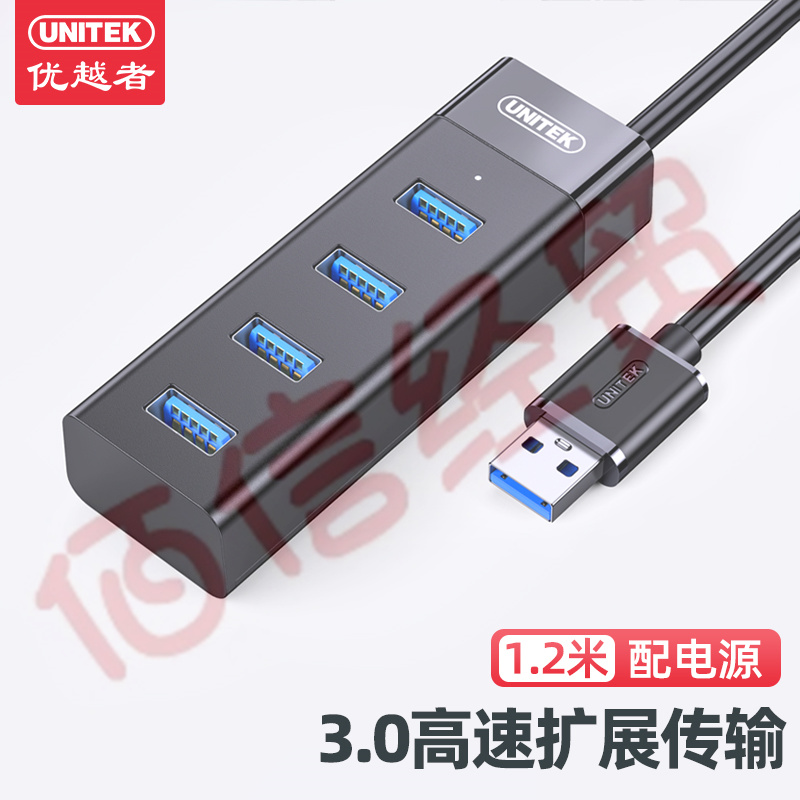 優(yōu)越者(UNITEK)USB分線器帶電源 高速hub集線器3.0 筆記本電腦一拖四usb擴展器多接口1.2米延長線 Y-3098CBK 自營