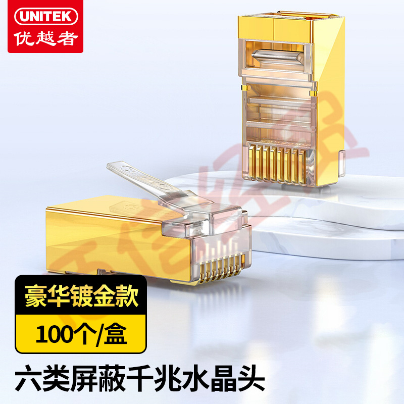 優(yōu)越者(UNITEK)六類屏蔽水晶頭 RJ45千兆網(wǎng)絡(luò)連接器 Cat6帶屏蔽 8p8c網(wǎng)線接頭鍍金100個(gè)/盒Y-OT19ATP 自營(yíng)