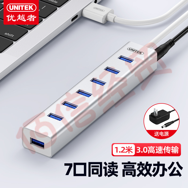 優(yōu)越者USB3.0分線器 高速擴(kuò)展7口HUB集線器 筆記本臺(tái)式電腦多接口轉(zhuǎn)換器帶電源全鋁銀色延長(zhǎng)線1.2米Y-3090BSL 自營(yíng)