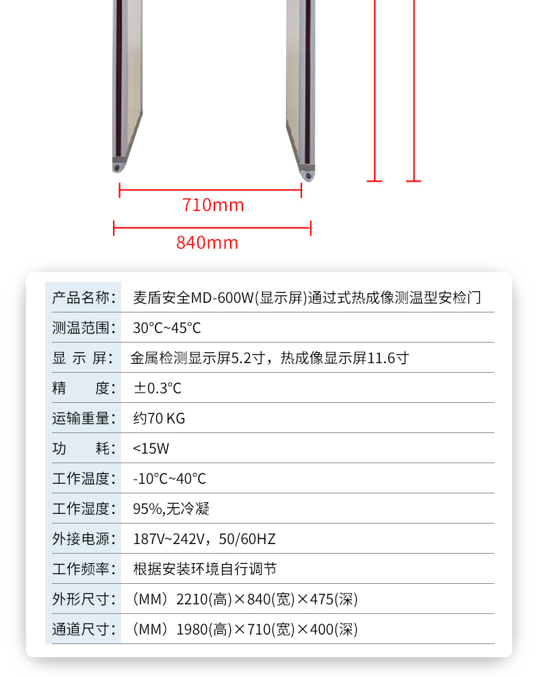 麥盾MD-600W 測溫安檢門 熱成像安檢門 直接通過測溫們 測溫安檢