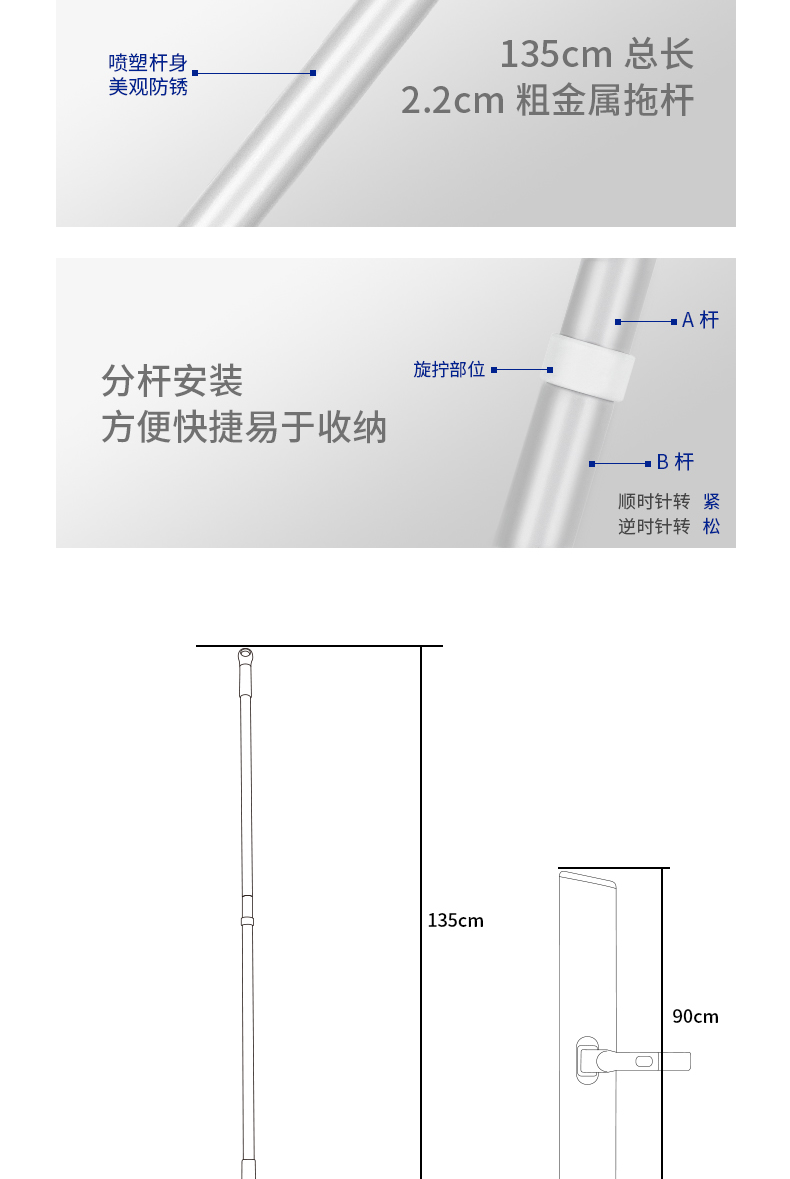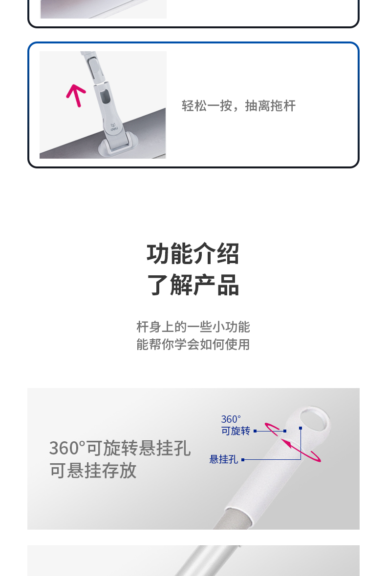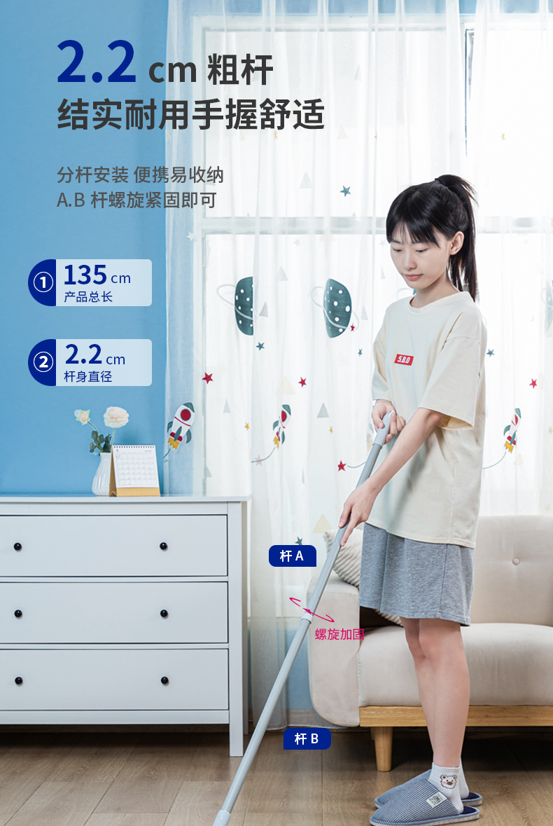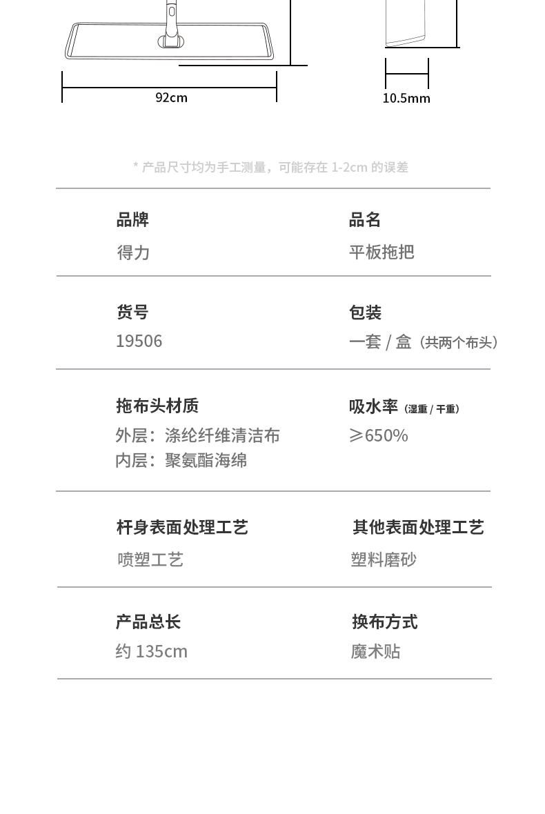 美麗雅 洗刷刷平板拖把備件 不銹鋼拖把桿 單拖把替換裝墩布拖把頭(10個(gè)/箱)