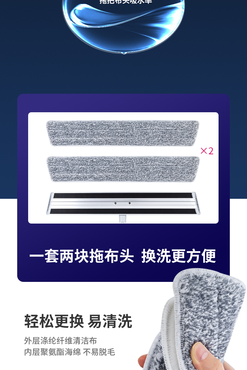 美麗雅 經(jīng)典平板拖把夾布地拖 干濕兩用木地板墩布 共2張拖把替換布