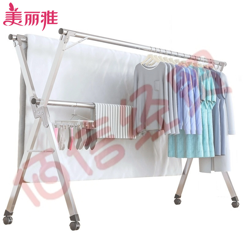 美麗雅 落地晾衣架 衣架 三桿不銹鋼可折疊晾衣桿掛衣架陽臺(tái)落地衣架曬架室內(nèi)外2米可伸縮免安裝帶滑輪 自營