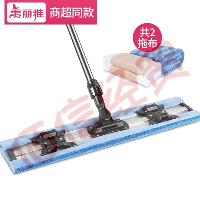 美麗雅 平板拖把 親親瀟灑600鋁板地拖 家用64cm大號(hào)塵推 拖把+2張拖布【纖維拖布1張+棉紗拖布1張】 自營(yíng)