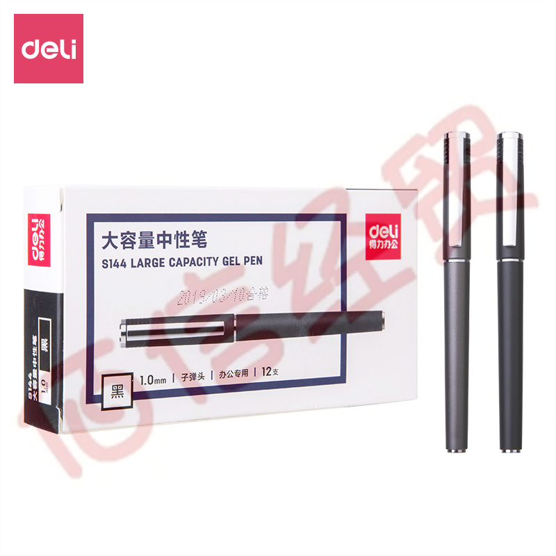 得力 deli S144 辦公大容量中性筆1.0mm子彈頭(黑) 單支(12支/盒)12支起售 自營