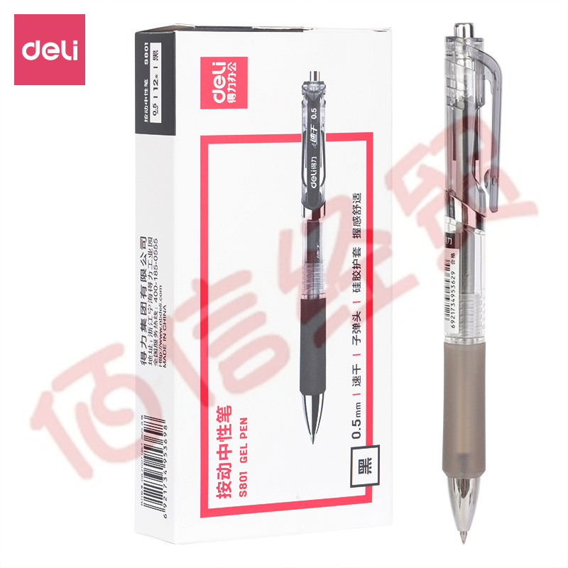 得力(deli)速干中性筆 0.5mm子彈頭學(xué)生辦公簽字筆 按動(dòng)筆水筆 黑色 12支/盒 SG-S801 自營(yíng)