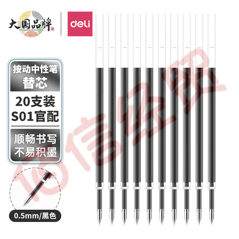 得力(deli)0.5mm按動(dòng)中性筆芯替芯 S01 K35用 黑色子彈頭20支/盒 辦公用品 自營(yíng)