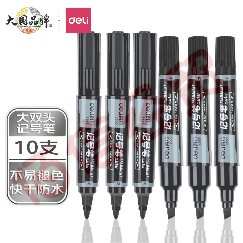 得力(deli) 大雙頭多用記號(hào)筆簽字筆 勾線筆會(huì)議筆馬克筆 10支/盒 黑色 S555 自營(yíng)