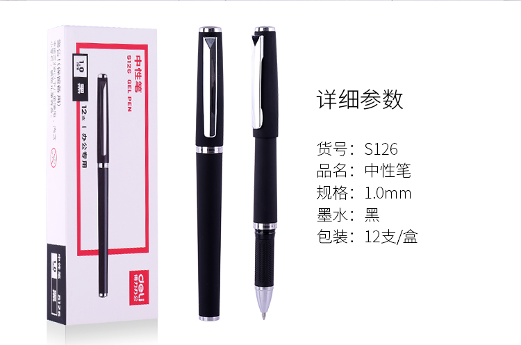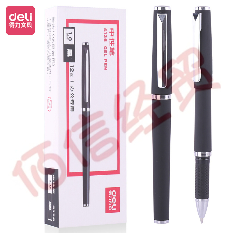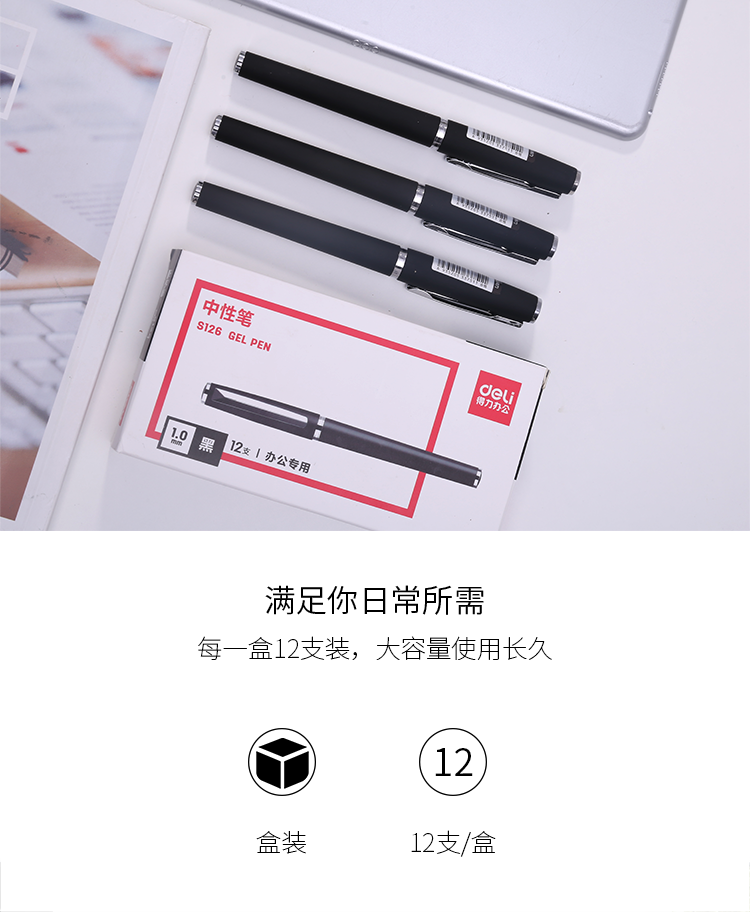 得力(deli)辦公1.0mm中性筆簽字筆水筆 辦公用品 子彈頭黑色12支 自營