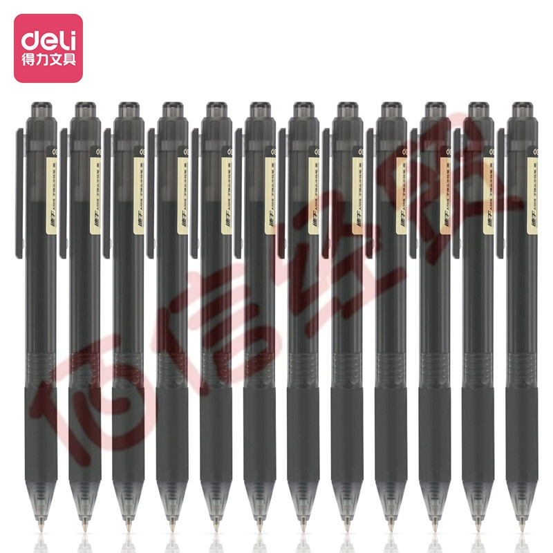得力(deli)速干0.5mm按動中性筆簽字筆 子彈頭黑色12支 自營