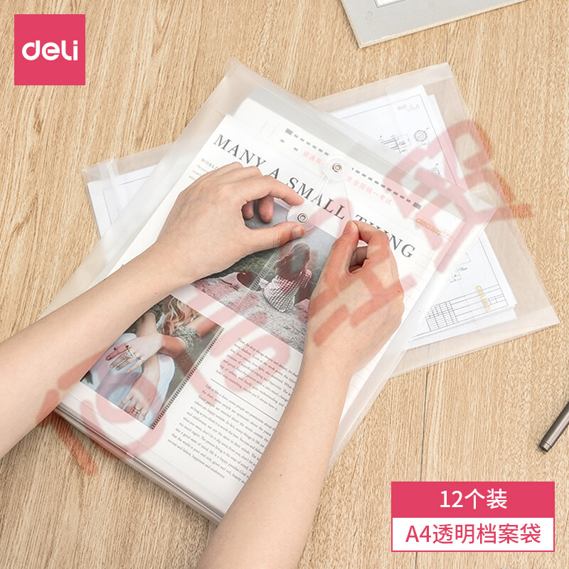 得力(deli)12個裝A4透明文件袋防水檔案袋 招標(biāo)產(chǎn)檢資料袋 文件保護 財務(wù)票據(jù)收納5511A 自營