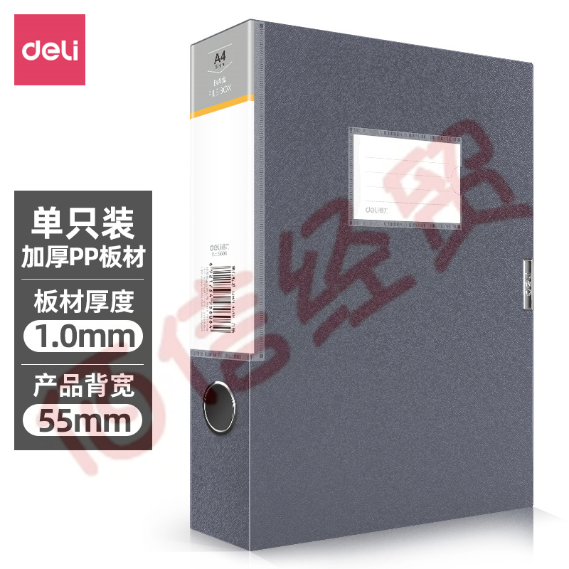 得力(deli)-1只-55mm-A4睿商系列加厚塑料文件盒 加厚 財會文件盒 考試收納 5606深灰 自營