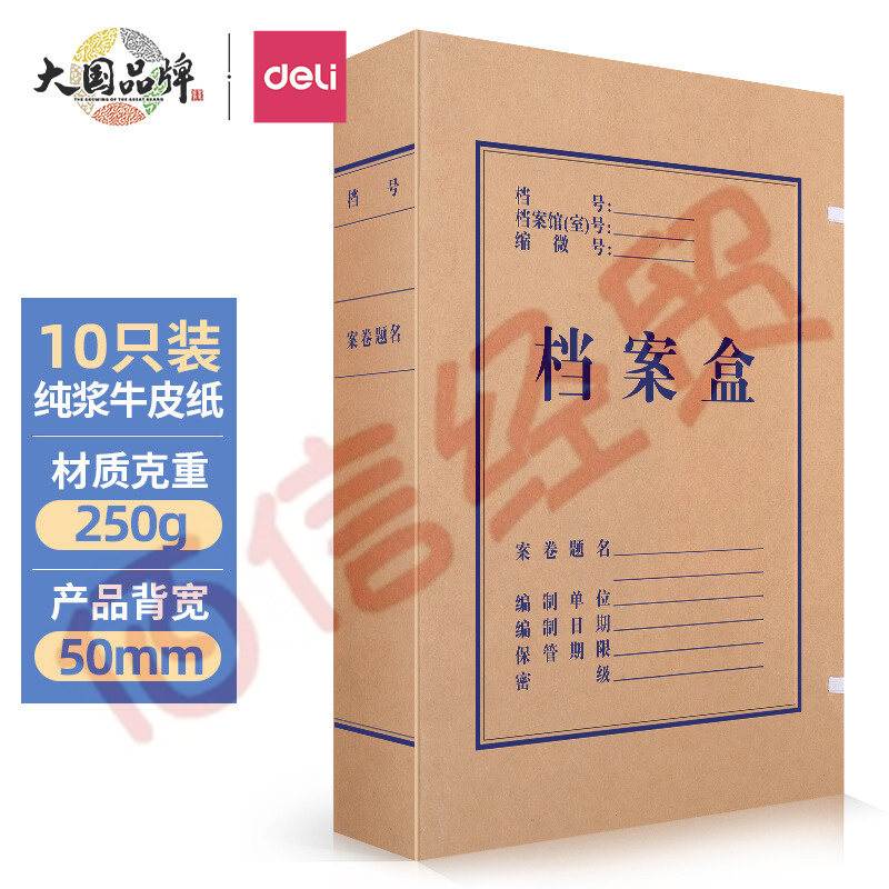 得力(deli)10只50mm純漿250g牛皮紙文件盒 加厚檔案盒 財務(wù)用品 考試收納 5925 自營