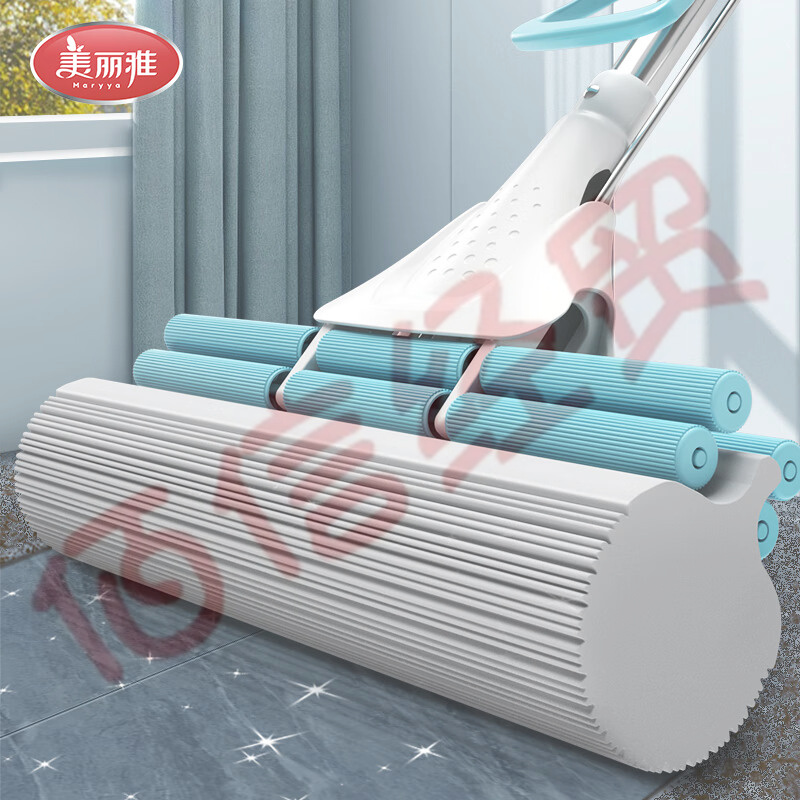 美麗雅 海綿拖把免手洗拖地神器懶人吸水拖把家用滾輪擠水膠棉拖把28cm墩布拖布 共2拖頭 自營