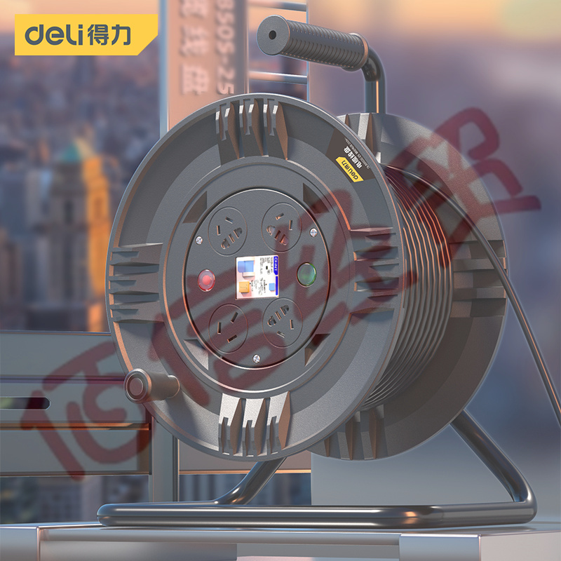 得力(deli) 工程接線盤移動(dòng)電纜線盤電線盤拖線盤卷線盤插座插排過熱保護(hù)4位50m2.5線徑帶16A插孔 DL8850S-25 自營