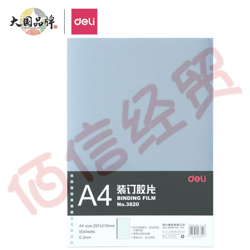 得力(deli) 3820 透明裝訂封面/裝訂膠片A4 50張/袋 自營