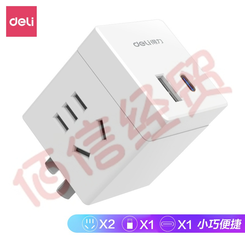 得力(deli)小魔方(18W)PD快充頭充電器USB插座/一轉(zhuǎn)多/轉(zhuǎn)換插頭Type-c支持蘋果/小米/華為 33638 自營