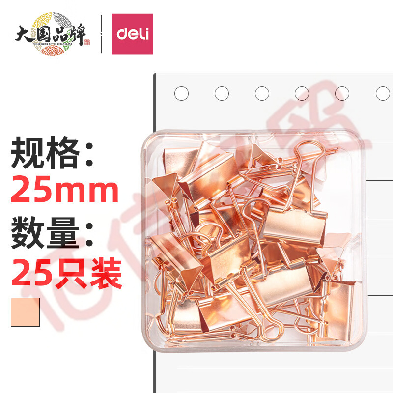 得力(deli)-25只 -4#玫瑰金長(zhǎng)尾夾-25mm--78203 (每包4盒) 自營(yíng)