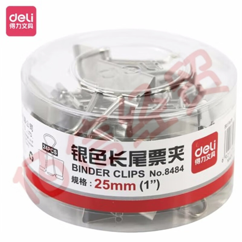 得力(deli)-24只/桶-銀色長尾夾-25mm(5桶裝) 自營