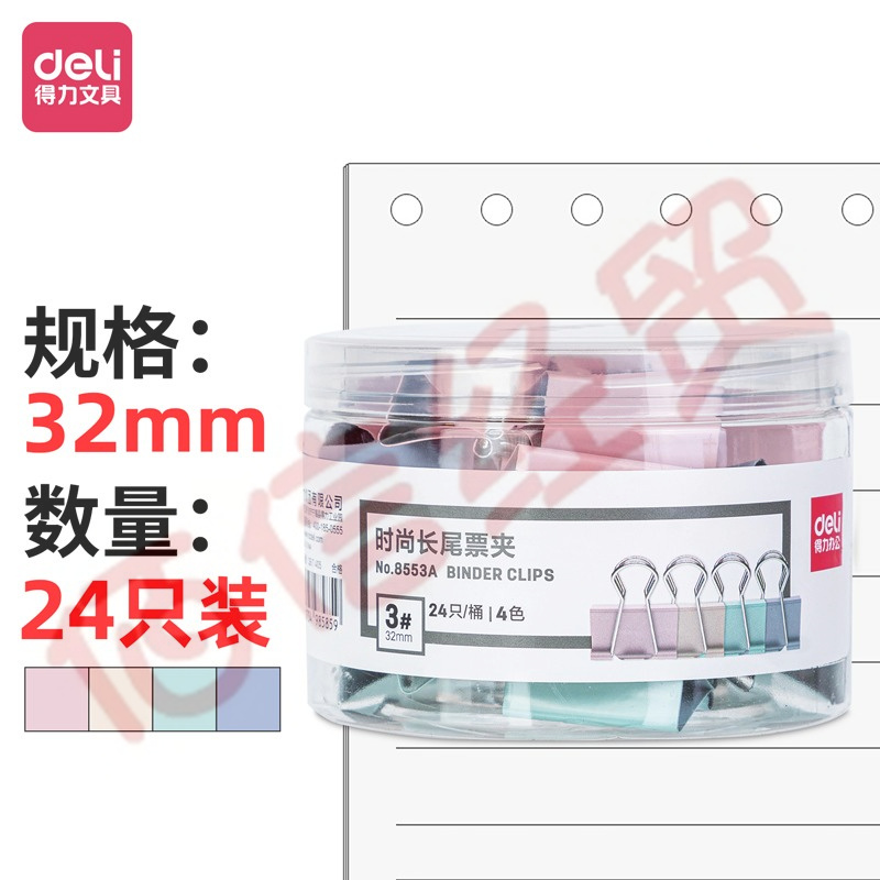 得力(deli) 長尾夾 8553A混色/24只(32mm) 自營