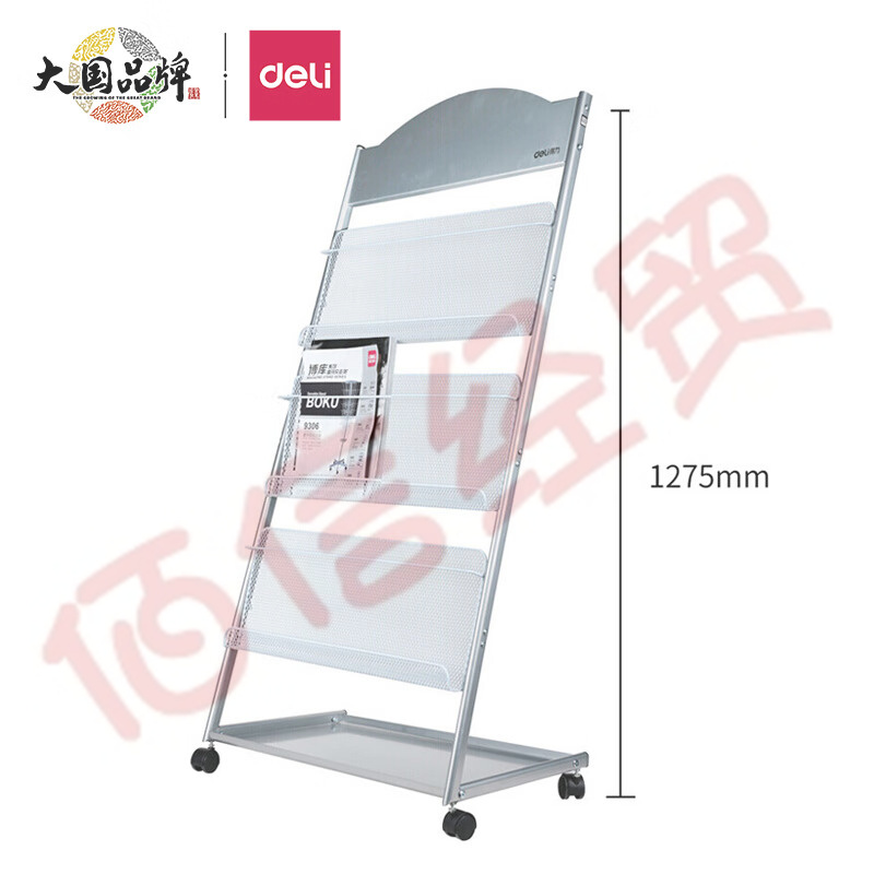 得力(deli)3層商務(wù)金屬報(bào)刊雜志架書刊架 宣傳冊(cè)展示架落地資料架 高1.27米 9308