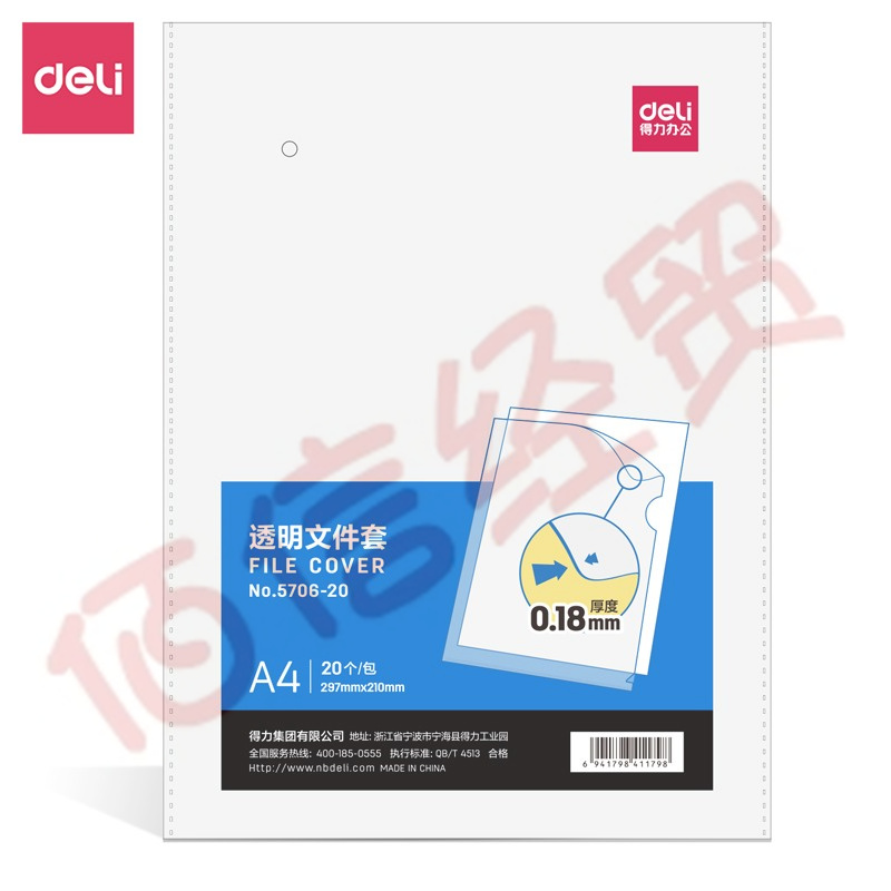 得力(deli) A4透明文件套 辦公用品 L形E310文件夾兩頁夾 20個(gè)/包 5706 自營