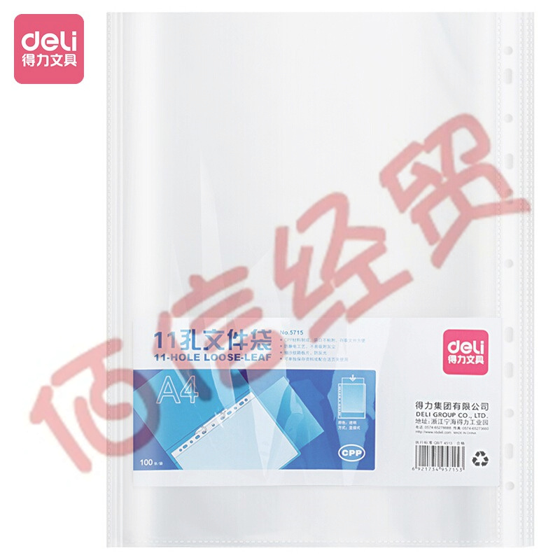得力(deli)5715 11孔資料冊(cè)A4文件袋 替芯袋保護(hù)袋 文件快遞袋 搭配孔夾快勞夾使用 100只/包裝 自營