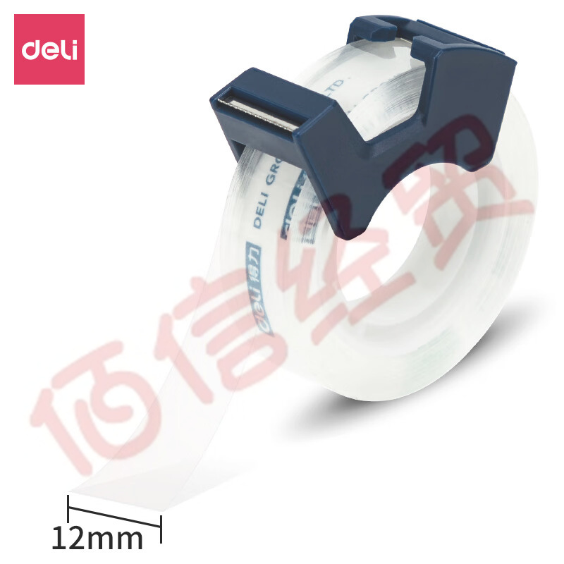 得力(deli) 易撕透明高粘文具膠帶/小膠帶 12mm*25Y單卷 帶簡易膠帶切割器套裝 辦公用品 30123 自營