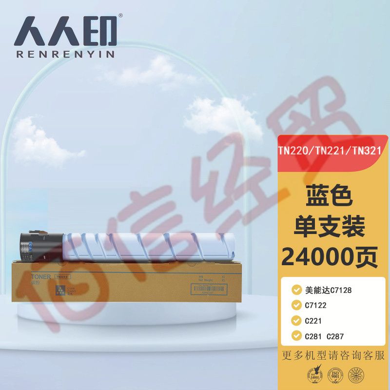 人人印TN220粉盒藍(lán)色 適用柯尼卡美能達(dá)C7128 C7122 C221 C281 C287墨盒 震旦ADT223 ADC223 S 283 碳粉 自營(yíng)