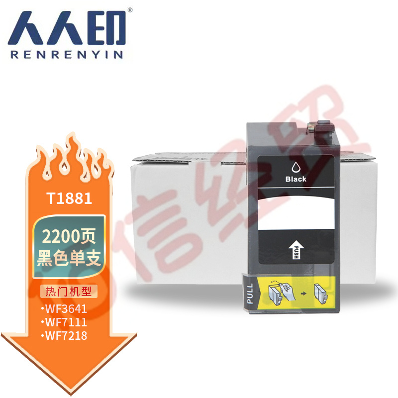 人人印 T1881黑色適用愛普生打印機墨盒WF7218 WF7728 WF3641 WF7111 WF7621 自營