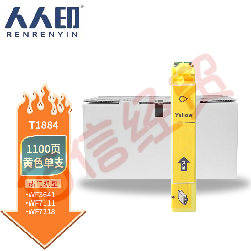 人人印 T1881黃色適用愛普生打印機(jī)墨盒WF7218 WF7728 WF3641 WF7111 WF7621 自營(yíng)
