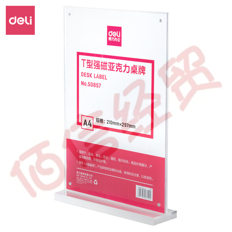 得力(deli)T型A4豎式透明強(qiáng)磁吸附亞克力桌牌/展示牌/臺(tái)卡/酒水牌 50857 自營(yíng)