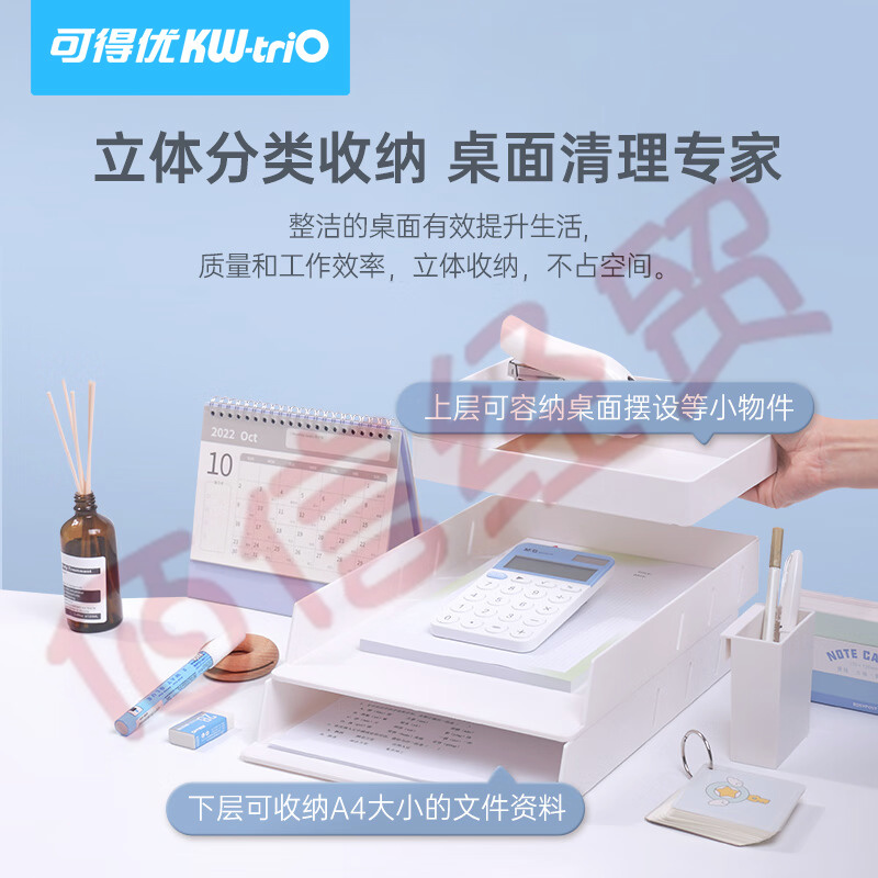 可得優(yōu)(KW-triO) 疊加式文件架選擇層數(shù)組合文件框多層文件欄文件筐 文件盤組合 白色 自營
