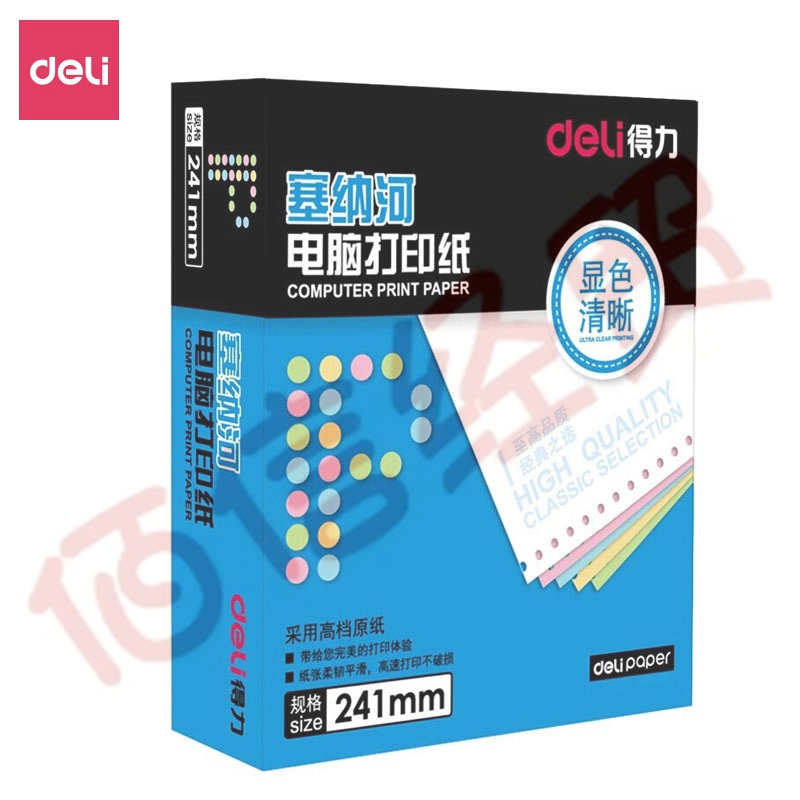 得力(deli)N241-2(C)彩色不撕邊 塞納河電腦打印紙 二聯(lián)整張【白+粉】 自營(yíng)