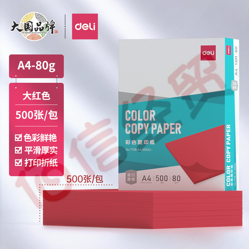 得力(deli)A4 80g 大紅色彩紙復(fù)印紙 彩色非厚卡紙兒童手工紙剪紙打印紙 500張/包 7758-A4-500 自營(yíng)