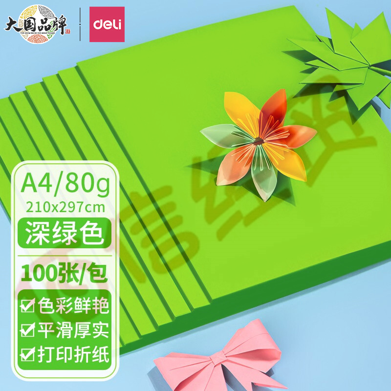 得力(deli)A4 80g深綠復(fù)印紙 彩色打印紙 兒童手工折紙剪紙彩紙 非硬卡紙 100張/包 7758 自營(yíng)