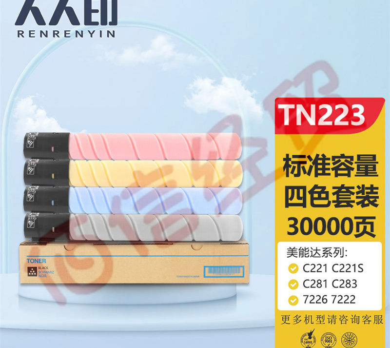 人人印 美能達TN223四色套裝墨粉盒 柯尼卡美能達TN224 C256 C266 C7222 C7226柯美C226碳粉 (標準容量) 自營
