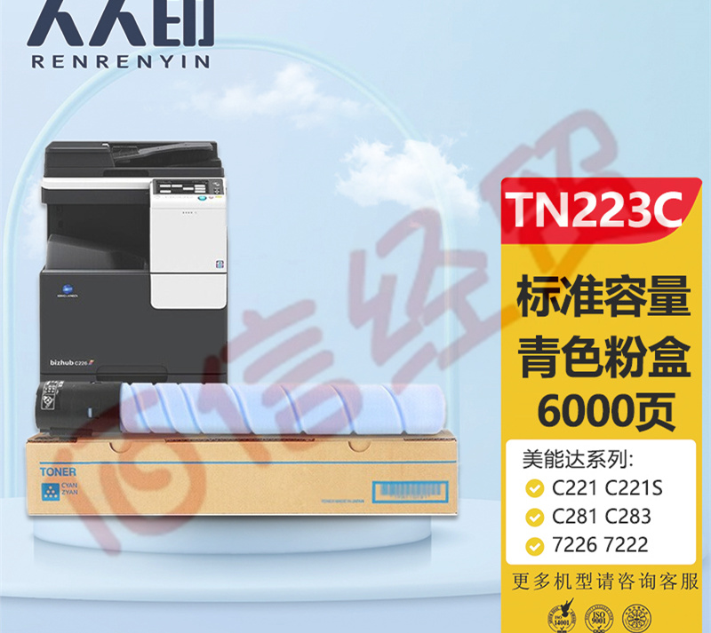 人人印 美能達TN223藍色墨粉盒 柯尼卡美能達TN224 C256 C266 C7222 C7226墨盒 柯美C226碳粉 (標(biāo)準(zhǔn)容量) 自營